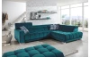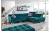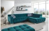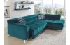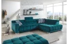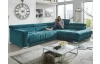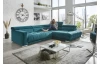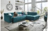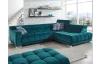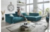 Rohová sedací souprava s taburetem Cosana, látka petrol, nastavitelná hloubka sedu