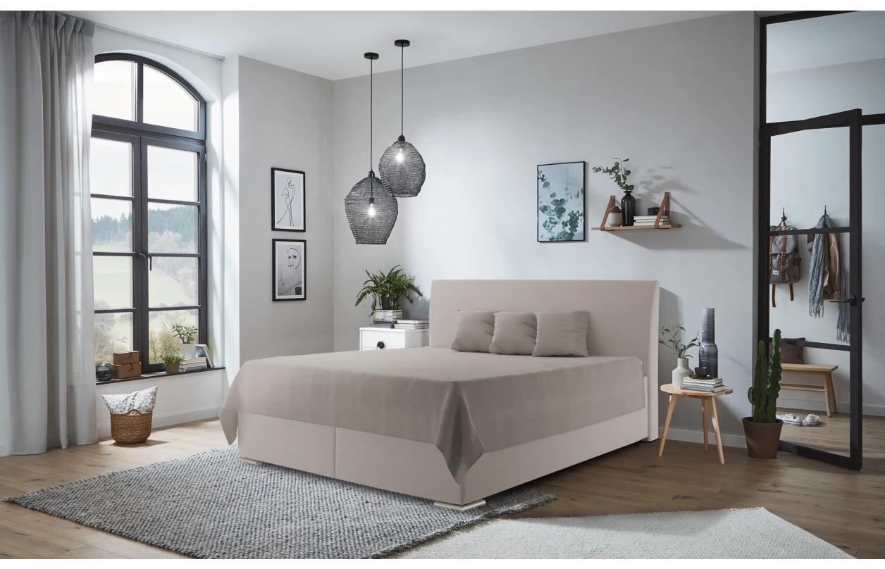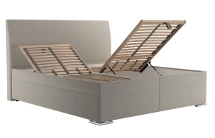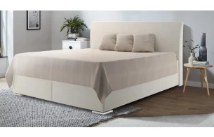 Komfortní vysoká postel, která se stylově hodí do každé ložnice. Očalouněna tkaninou v barvě krémová. Vyšší konstrukce umožňuje snazší vstávání, oceníte také objemný úložný prostor. Dodávána včetně roštů, vysokých matrací, denní deky i polštářků.
