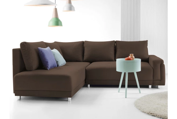 Rohová sedací souprava s levým otomanem pasuje svými ideálními rozměry do mnoha interierů. Zajímavě tvarovaná područka, prakticky řešený design a příjemně pohodlné sezení s velkými opěrnými polštáři si snadno oblíbíte. Očalouněna látkou v odstínu hnědá.