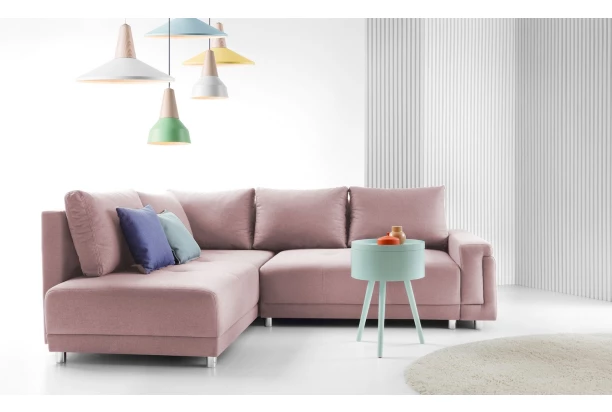 Rohová sedací souprava s levým otomanem pasuje svými ideálními rozměry do mnoha interierů. Zajímavě tvarovaná područka, prakticky řešený design a příjemně pohodlné sezení s velkými opěrnými polštáři si snadno oblíbíte. Očalouněna látkou v odstínu růžová.