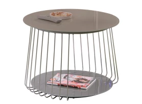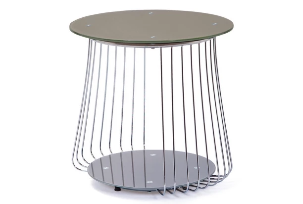 Netradičně řešený odkládací stolek o průměru 50 cm může být skvělou inspirací pro nadčasově zařízený byt. Kombinace skla v odstínu cappuccino a kovu působí vzdušně.