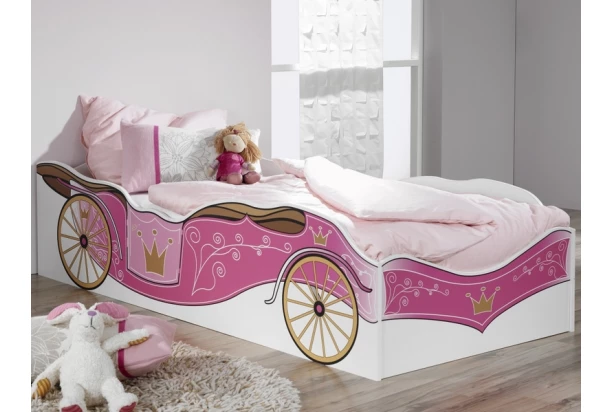 Postel ve tvaru královského kočáru z dětské kolekce Kate si zamilují malé i velké princezny. Nábytek s růžovými aplikacemi a motivem princeznovské koruny je skvělou inspirací pro zařízení dětského pokoje pro holky. Dopřejte tak svým dětem prožít si svůj sen v jejich vlastním dětském království.