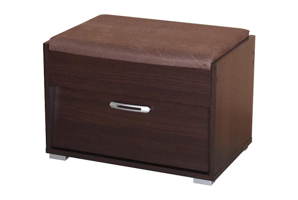 Nízký botník s praktickým polstrovaným sedákem v horní části, který usnadní obouvání se. V dekoru wenge.