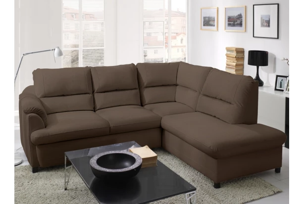 Elegantní rohová sedačka s otomanem vpravo a extra vypolstrovaným opěrákem se silikonovou pěnou poskytuje výtečný komfort a oporu. Spodní část otomanu ukrývá rozměrný úložný prostor, který využijete třeba pro ukládání sezónních věcí. Potažena příjemně měkkou látkou v hnědém odstínu.