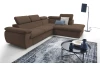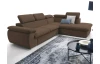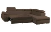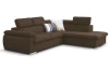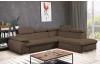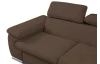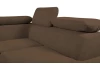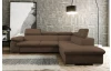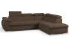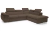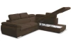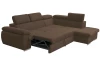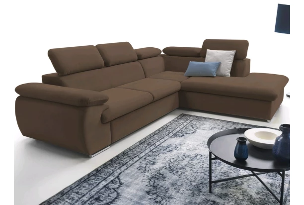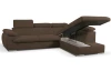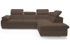 Atraktivní rohová sedací souprava s otomanem vpravo a polohovatelnými zádovými opěrkami. Očalouněna příjemně měkkou látkou v barvě hnědá. Zaujme moderním designem zaoblených tvarů a potěší kvalitním vypolstrováním pro Váš každodenní komfort. Sedačka je navíc vybavena funkcí rozkladu pro příležitostné spaní i praktickým úložným prostorem pod otomanem – získáte tak další místo pro ukládání věcí.