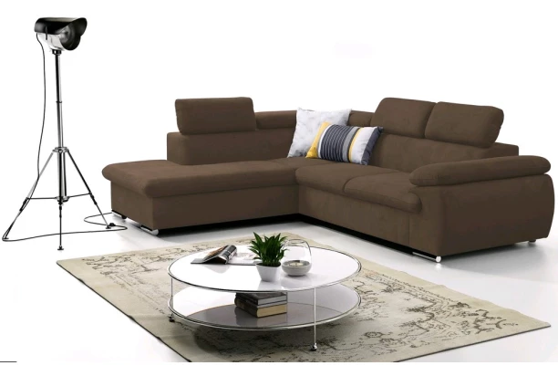 Atraktivní rohová sedací souprava s otomanem vlevo a polohovatelnými zádovými opěrkami. Očalouněna příjemně měkkou látkou v barvě hnědá. Zaujme moderním designem zaoblených tvarů a potěší kvalitním vypolstrováním pro Váš každodenní komfort. Sedačka je navíc vybavena funkcí rozkladu pro příležitostné spaní i praktickým úložným prostorem pod otomanem – získáte tak další místo pro ukládání věcí.