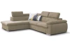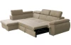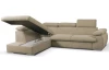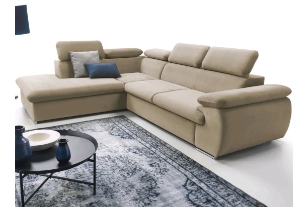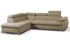 Atraktivní rohová sedací souprava s otomanem vlevo a polohovatelnými zádovými opěrkami. Očalouněna příjemně měkkou látkou v barvě světle béžová. Zaujme moderním designem zaoblených tvarů a potěší kvalitním vypolstrováním pro Váš každodenní komfort. Sedačka je navíc vybavena funkcí rozkladu pro příležitostné spaní i praktickým úložným prostorem pod otomanem – získáte tak další místo pro ukládání věcí.