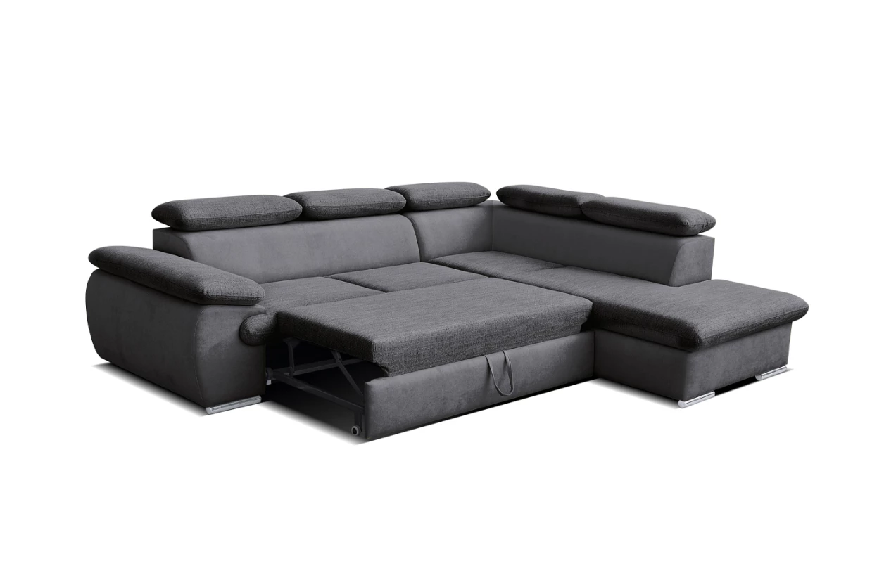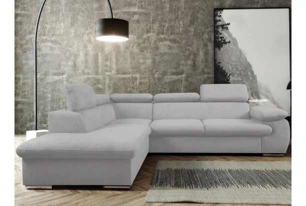Atraktivní rohová sedací souprava s otomanem vlevo a polohovatelnými zádovými opěrkami. Očalouněna měkkou strukturovanou látkou v barvě světle šedá. Zaujme moderním designem zaoblených tvarů a potěší kvalitním vypolstrováním pro Váš každodenní komfort. Sedačka je navíc vybavena funkcí rozkladu pro příležitostné spaní i praktickým úložným prostorem pod otomanem – získáte tak další místo pro ukládání věcí.