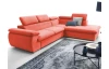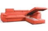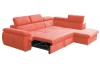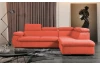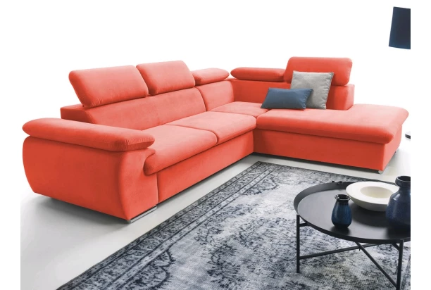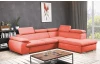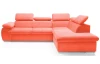 Atraktivní rohová sedací souprava s otomanem vpravo a polohovatelnými zádovými opěrkami. Očalouněna příjemně měkkou látkou v barvě cihlová oranžová. Zaujme moderním designem zaoblených tvarů a potěší kvalitním vypolstrováním pro Váš každodenní komfort. Sedačka je navíc vybavena funkcí rozkladu pro příležitostné spaní i praktickým úložným prostorem pod otomanem – získáte tak další místo pro ukládání věcí.