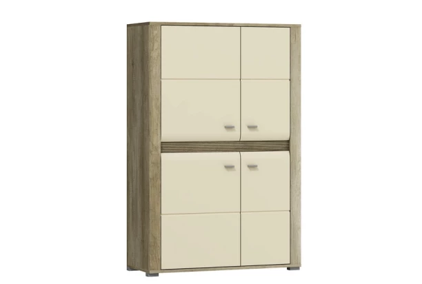 Komoda z elegantního programu Campari je vyrobena v kombinaci divokého dubu a krémového lesku. Dekorativní vodorovná lišta s vyfrézovanou profilací přidává na zajímavosti.