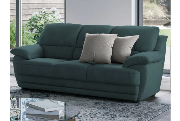 Pohodlně nadýchané vypolstrování trojsedáku poskytuje výtečný komfort během sezení a elegantní design zaoblených tvarů se hodí do moderního i klasicky zařízeného interieru. Trojmístná pohovka je očalouněna látkou v odstínu petrolejová modro-zeleno-šedá.