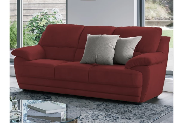 Pohodlně nadýchané vypolstrování trojsedáku poskytuje výtečný komfort během sezení a elegantní design zaoblených tvarů se hodí do moderního i klasicky zařízeného interieru. Trojmístná pohovka je očalouněna látkou v odstínu rubínově červená.
