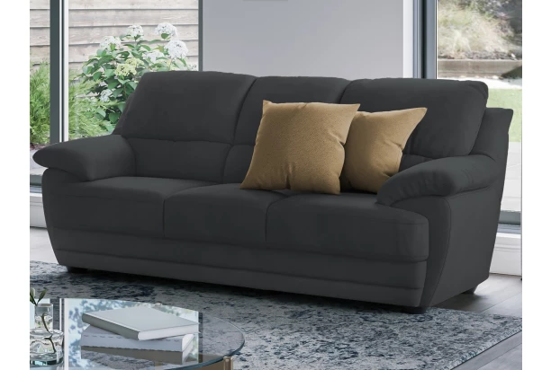 Pohodlně nadýchané vypolstrování trojsedáku poskytuje výtečný komfort během sezení a elegantní design zaoblených tvarů se hodí do moderního i klasicky zařízeného interieru. Trojmístná pohovka je očalouněna látkou v odstínu antracitová tmavě šedá.