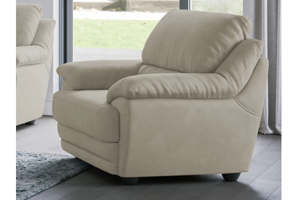 Pohodlně nadýchané vypolstrování křesla poskytuje výtečný komfort během sezení a elegantní design zaoblených tvarů se hodí do moderního i klasicky zařízeného interieru. Křeslo je očalouněno látkou v odstínu béžová latté.