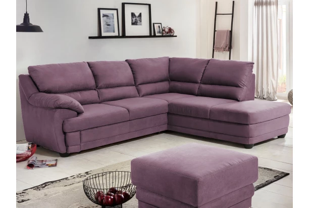 Pohodlně nadýchané vypolstrování sedačky poskytuje výtečný komfort během sezení a elegantní design zaoblených tvarů se hodí do moderního i klasicky zařízeného interieru. Rohová sedací souprava je očalouněna látkou v odstínu fialová lila a s otomanem vytváří pravý roh. Sedačku snadno proměníte na lůžko pro příležitostné spaní díky funkci rozkladu.