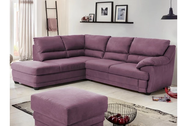 Pohodlně nadýchané vypolstrování sedačky poskytuje výtečný komfort během sezení a elegantní design zaoblených tvarů se hodí do moderního i klasicky zařízeného interieru. Rohová sedací souprava je očalouněna látkou v odstínu fialová lila a s otomanem vytváří levý roh. Sedačku snadno proměníte na lůžko pro příležitostné spaní díky funkci rozkladu.