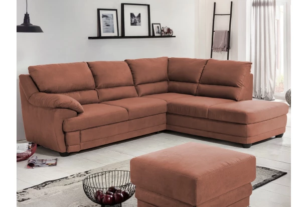 Pohodlně nadýchané vypolstrování sedačky poskytuje výtečný komfort během sezení a elegantní design zaoblených tvarů se hodí do moderního i klasicky zařízeného interieru. Rohová sedací souprava je očalouněna látkou v odstínu měděná rezavá a s otomanem vytváří pravý roh. Sedačku snadno proměníte na lůžko pro příležitostné spaní díky funkci rozkladu.