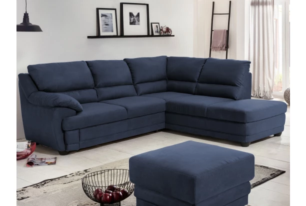Pohodlně nadýchané vypolstrování sedačky poskytuje výtečný komfort během sezení a elegantní design zaoblených tvarů se hodí do moderního i klasicky zařízeného interieru. Rohová sedací souprava je očalouněna látkou v odstínu námořnická modrá a s otomanem vytváří pravý roh. Sedačku snadno proměníte na lůžko pro příležitostné spaní díky funkci rozkladu.