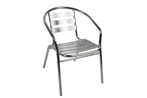 Klasická kovová židle na zahradu je oblíbená pro její snadnou údržbu a možnost stohování více kusů na sebe.