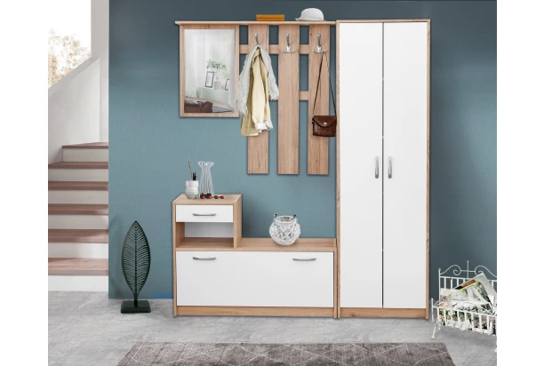 Klasická 2-dveřová skříň může být využita v předsíni nebo kdekoliv jinde. V dubovo-bílé kombinaci.