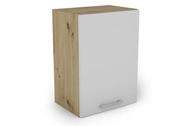 Horní 1-dveřová kuchyňská skříňka o šířce 40 cm dokonale doplní funkční prostor menší kuchyně. Nábytek vyroben v kombinaci dekoru dub artisan a bílé barvy.