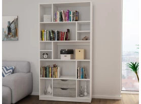 Vysoký regál/knihovna Sten, dub sonoma/bílý