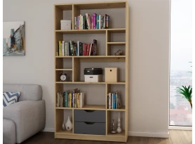 Vysoký moderní regál o šířce 100 cm v dekoru dub sonoma má 2 praktické zásuvky a může být umístěn ke zdi nebo volně v prostoru jako předěl místnosti.