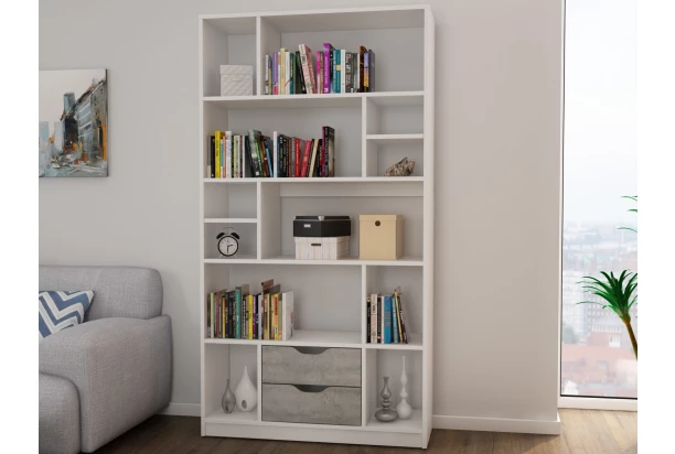 Vysoký regál/knihovna Sten, bílý/šedý beton