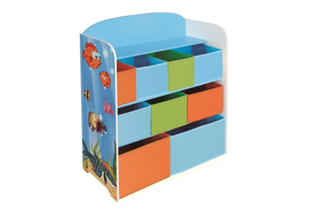 Krásný dětský regál s pestrobarevnými motivy podmořského světa dokonale doplní a rozveselí prostor dětského pokoje.