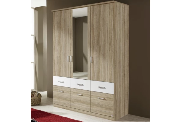 Šatní skříň ze série Bremen je oblíbená pro svou praktičnost a dobrou úroveň zpracování. Vyrobena v kombinaci dekoru dub san remo a bílé barvy. Nabízí úložný prostor, 3 otočné dveře, 1 zrcadlo a 6 praktických zásuvek o různých velikostech pro přehledné ukládání oblečení, prádla a doplňků. Z jednotlivých elementů série Bremen můžete navíc sestavit libovolně velkou šatnu a přizpůsobit si tak úložné prostory podle individuálních potřeb.