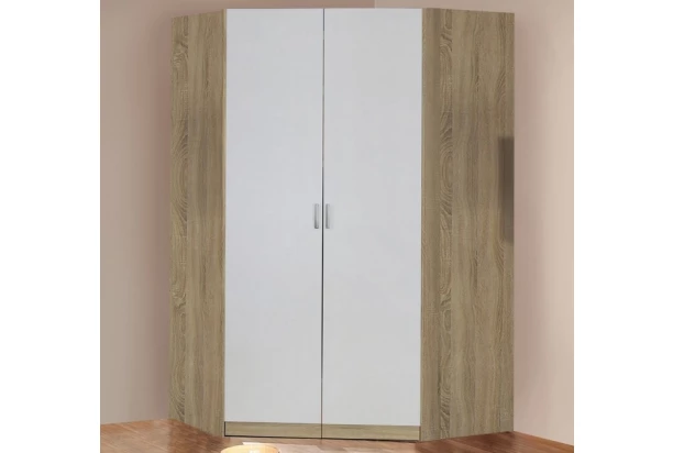 Rohová šatní skříň Bremen, dub sonoma/bílá