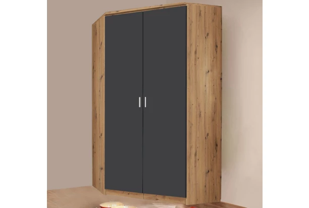Rohová šatní skříň Bremen, dub artisan/tmavě šedá