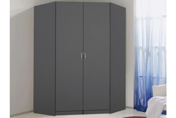 Rohová šatní skříň z programu Case je vyrobena v barvě tmavě šedá a přináší do domácnosti jednoduchou eleganci a funkčnost. Konstrukce o šířce 117 cm obsahuje 2 dveře a praktické vnitřní police.
