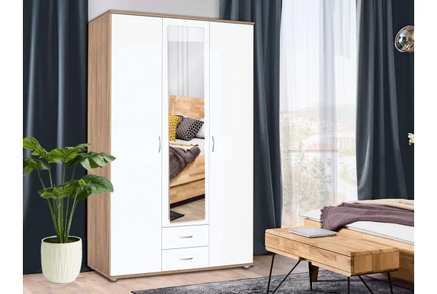Šatní skříň 3-dveřová Twin, dub sonoma/bílá
