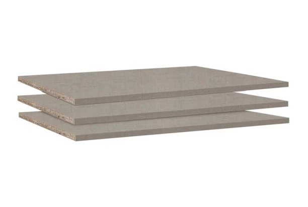 Set polic o šířce 88 cm pro vnitřní vybavení skříní s posuvnými dveřmi. Set obsahuje 3 kusy polic. Police je možné kombinovat pouze se skříněmi, u kterých je tato police uvedena jako sdružený produkt.