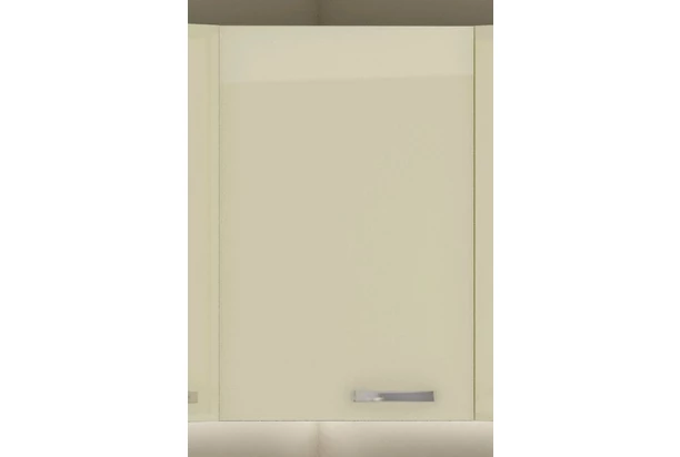 Horní rohová kuchyňská skříňka z programu Karmen v jednoduchém, funkčním a zároveň moderním stylu. Přední plochy v krémovém vysokém lesku. Různé elementy kuchyňského programu Karmen můžete mezi sebou libovolně kombinovat a sestavit si tak libovolně velkou kuchyni podle vašich individuálních potřeb a prostorových možností.