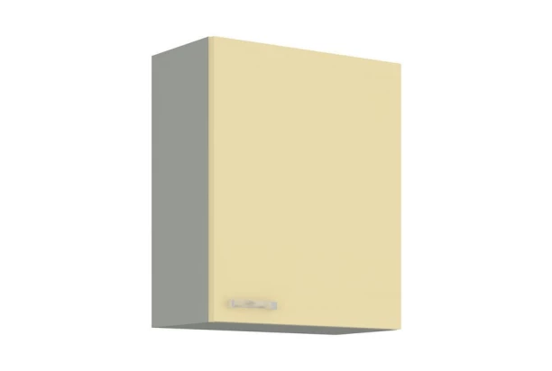 Horní kuchyňská skříňka o šířce 60 cm z programu Karmen v jednoduchém, funkčním a zároveň moderním stylu. Přední plochy v krémovém vysokém lesku. Různé elementy kuchyňského programu Karmen můžete mezi sebou libovolně kombinovat a sestavit si tak libovolně velkou kuchyni podle vašich individuálních potřeb a prostorových možností.