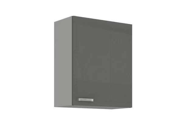 Horní kuchyňská skříňka o šířce 60 cm z programu Grey v jednoduchém, funkčním a zároveň moderním stylu. Přední plochy v šedém vysokém lesku. Různé elementy kuchyňského programu Grey můžete mezi sebou libovolně kombinovat a sestavit si tak libovolně velkou kuchyni podle vašich individuálních potřeb a prostorových možností.