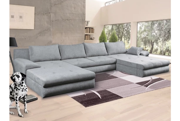 Extra prostorná sedací souprava ve tvaru U je koncipována podle aktuálních trendů. Oceníte nejen prostornost a pohodlí širokých otomanů při domácí relaxaci, ale také funkci rozkladu a úložný prostor. Očalouněna světle šedou látkou.