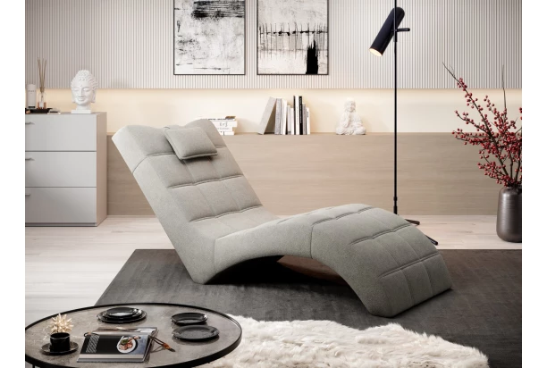 Relaxační lehátko v anatomickém tvaru přímo láká ke trávení příjemných chvil během odpočinku, sledování televize nebo třeba čtení knížek. Tato lenoška je očalouněna příjemně měkkou látkou v barvě šedo-béžová. Moderní design této relaxační pohovky zvýrazňuje dvojité prošití i praktický polštářek pod hlavu.
