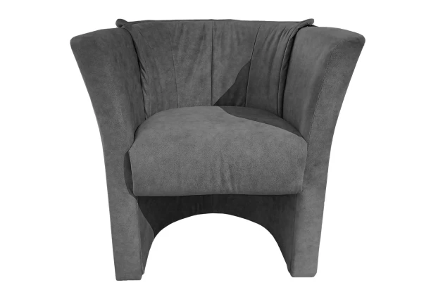 Křeslo Lux je oblíbené pro svou kompaktní velikost a zakulacené tvarování. Příjemně měkký látkový potah v šedé vintage optice broušené kůže zaujme na pohled.