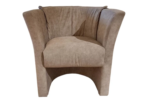 Křeslo Lux je oblíbené pro svou kompaktní velikost a zakulacené tvarování. Příjemně měkký látkový potah v béžové vintage optice broušené kůže zaujme na pohled.