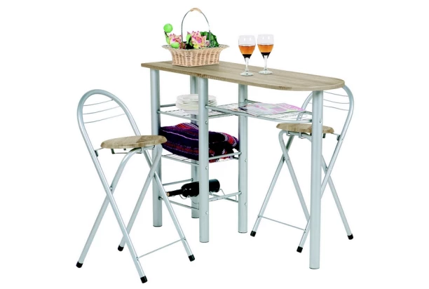 Malá jídelní souprava, skládá se ze stolku s 2 židliček. S několika odkládacími policemi. V dekoru dub Sonoma.