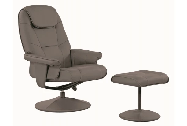 Šedé relaxační křeslo s funkcí polohování pro relaxaci, kterou si zasloužíte. Potah z ekokůže. Včetně přístavné podnožky.