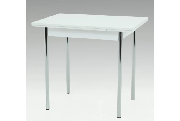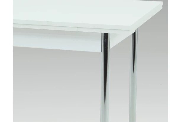 Malý jídelní stůl na kovových nohách skvěle poslouží v malém prostoru kuchyně nebo jídelny. Jídelní desku o rozměru 90×65 cm v bílé barvě můžete navíc rozložit a zvětšit tak její plochu.