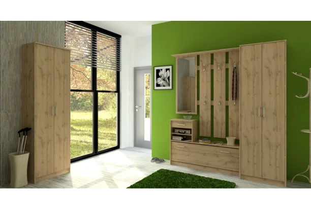 Sympatická sestava předsíňové stěny, která obsahuje vše potřebné. Vyrobena v dekoru dub wotan.
