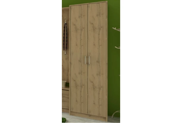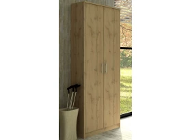 Úzká policová 2-dveřová skříň, která poslouží dobře v malých prostorech, ve spíži i jako botník. V dekoru dub wotan.