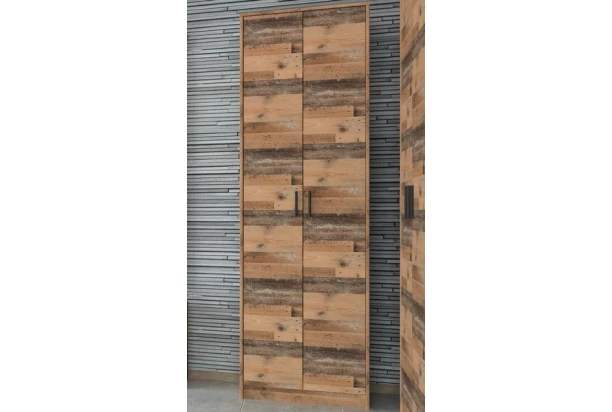 Úzká 2-dveřová skříň na kabáty, která poslouží dobře v malých předsíních nebo šatnách. Vyrobena ve vintage optice dřevěných prken a dokonale doplní stylově zařízený byt.