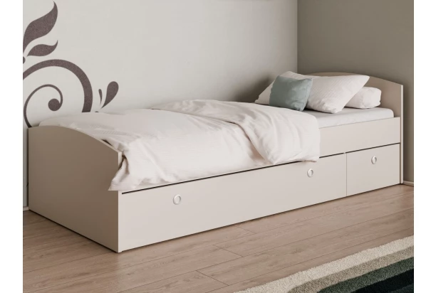 Jednolůžková postel o rozměru 90×200 cm vyniká především svými praktickými úložnými prostory ve spodní části. Vyrobena v kašmírově béžové barvě.