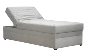 Komfortní postel (válenda) o rozměru lůžka 90×200 cm je vybavena funkcí polohování hlavové části. Obsahuje rošt i pěnovou matraci. Očalouněna příjemně měkkou látkou v odstínu středně šedá.